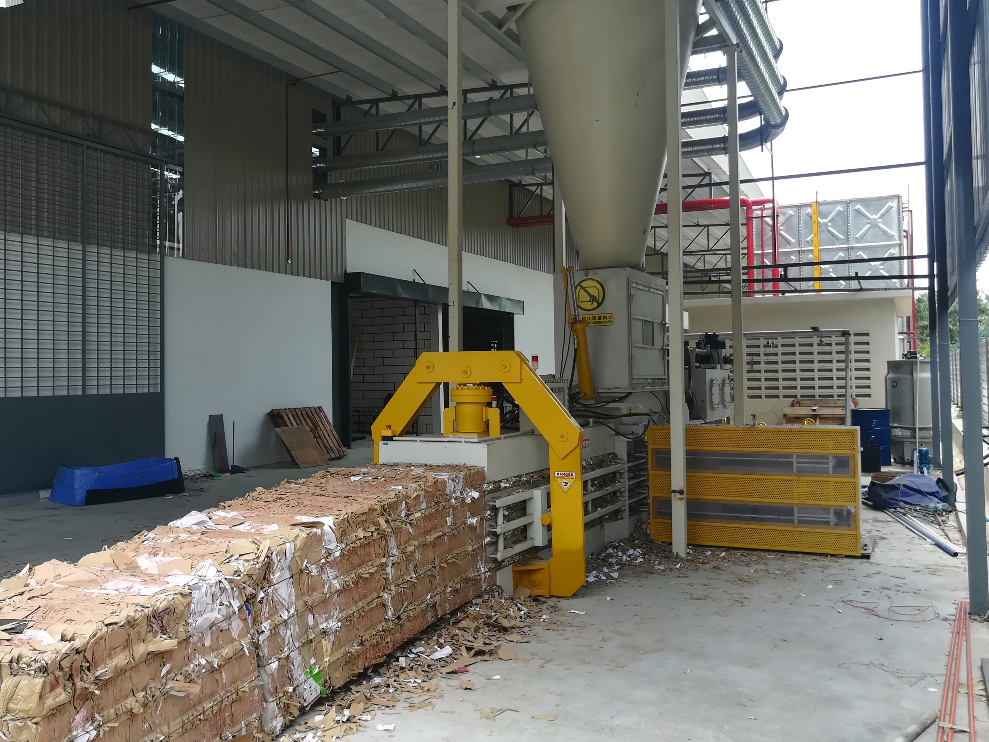 The baling press is used to perform baling and recycling on waste paper, cardboards, etc. in a fully-automatic manner. This baling machine mainly consists of bale chamber, main hydraulic cylinder, energy saving hydraulic system, hopper, hydraulic cylinder for compressing bale, MITSUBISHI PLC control system, automatic tying mechanism, etc. Newly designed oil circuit allows for high working efficiency with low consumption. Automatic tying system wraps tie steel wires around the bale after the bale is completely compacted, which prevents it from becoming loose. Featuring high baling speed, it's a type of modern automatic waste recycling equipment.